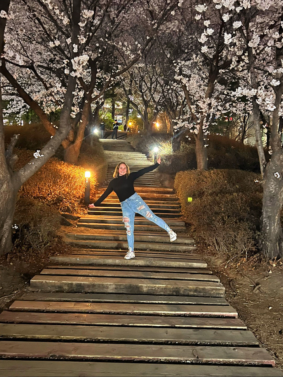 Fast-forward more than a decade. Schaefer decided to apply for a Freeman Foundation Internship at the same time that she applied to study abroad in South Korea. She received both. In the summer of 2022, Schaefer traveled to South Korea as a TESOL intern, working as an English tutor at an elementary bilingual academy. The experience helped her learn the Korean language. Schaefer said she loved the experience working with children and, it turns out, the feelings were mutual.