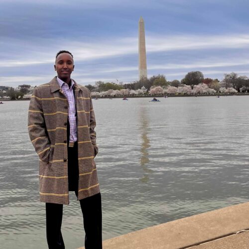 Abdimalik Hashi M’24 is graduating from Saint Michael’s MATESOL program and won a Fulbright scholarship to travel to Kenya. Last year, he was president of the MLK Jr. Society at Saint Michael’s. He is also a logistics officer in the U.S. Army and drives for Uber for fun. He said he loves learning from others.