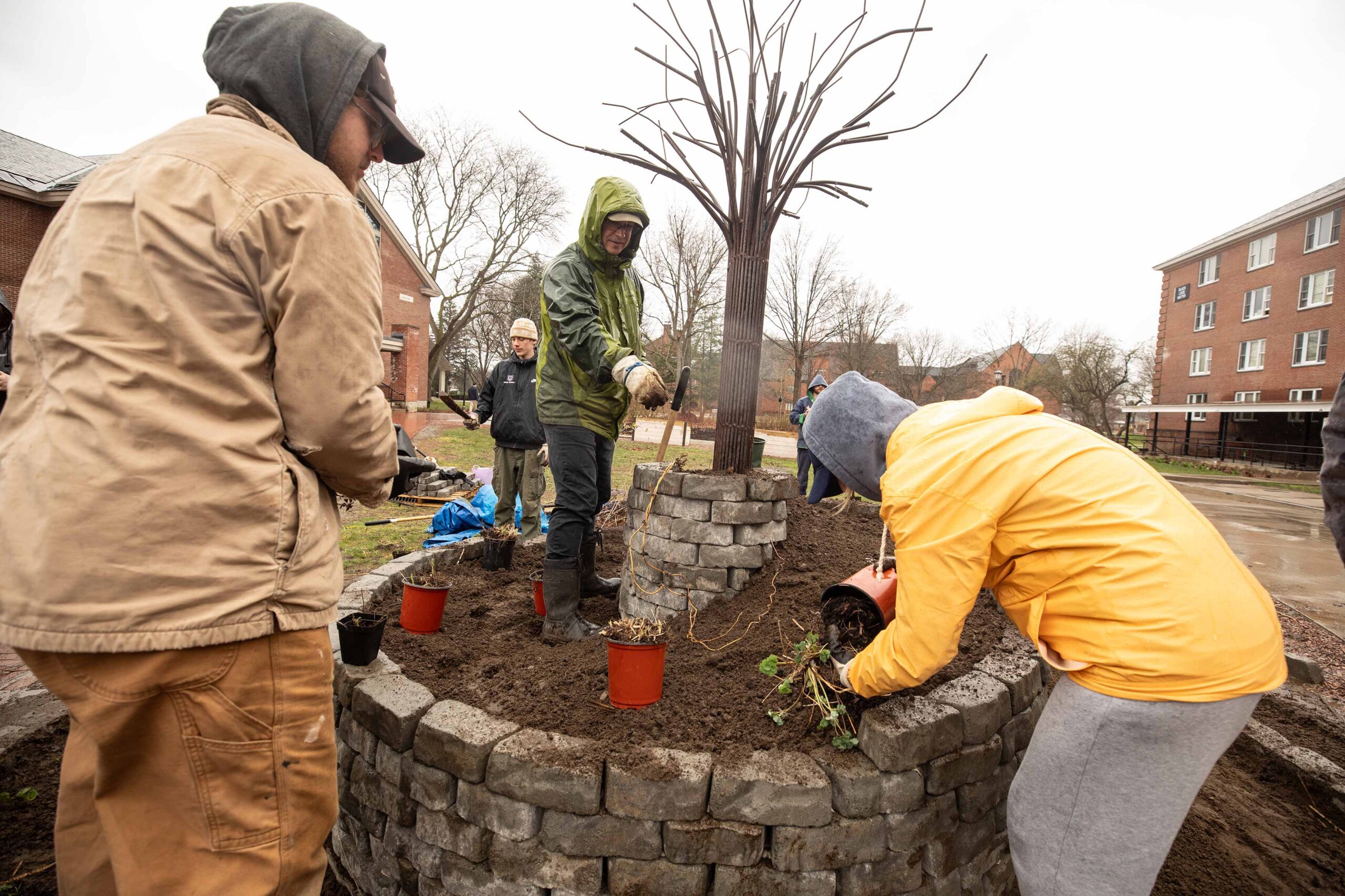 Collier explained that his students were recreating the Spiral Garden in the center of campus from its original location near Sloane Art Center, which was on a piece of land the College recently sold. The original Spiral Garden was created in 2014 by Collier’s Art and Ecology class.