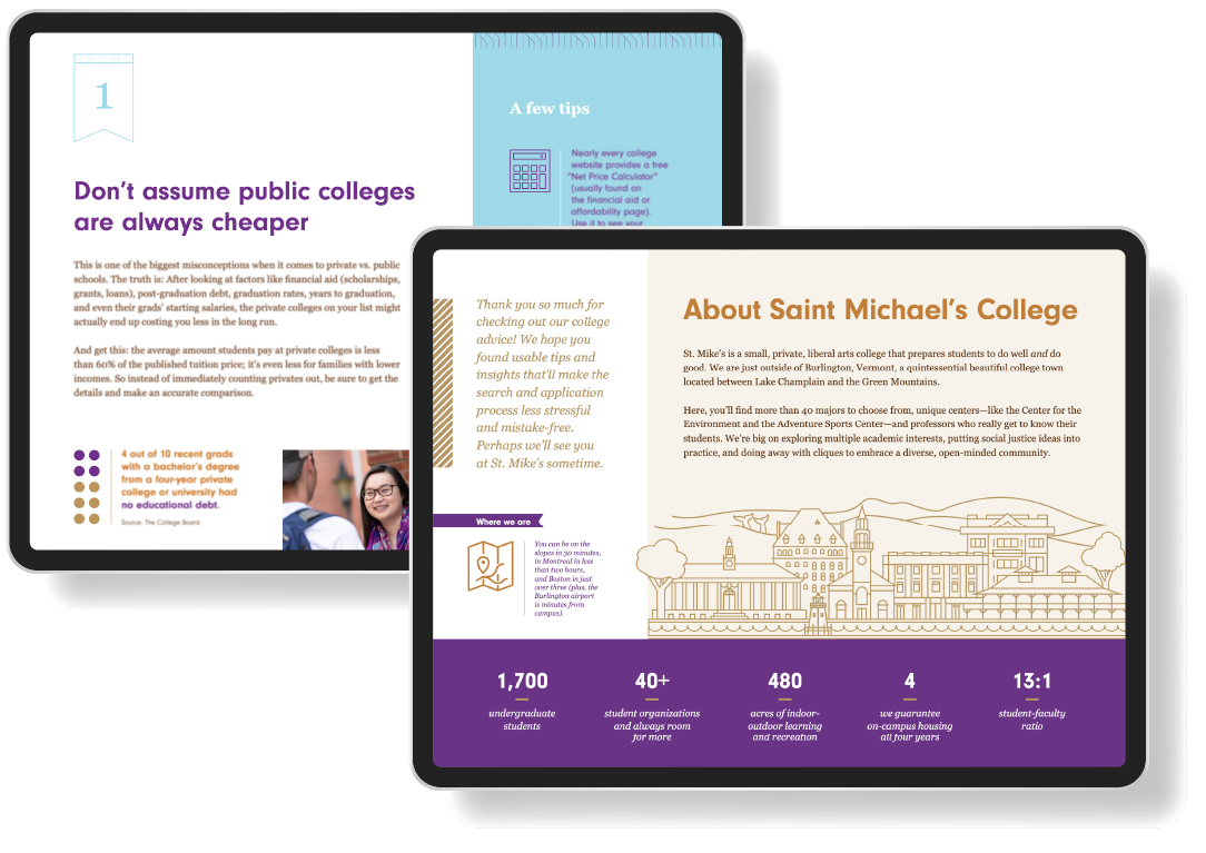 The good news? Admission counselors are on your side! We want you to succeed and enjoy the process. That’s why the admission team at Saint Michael’s College put together this FREE guide: to give you the inside scoop on ways to get the most out of the process and keep you headed in the right direction.