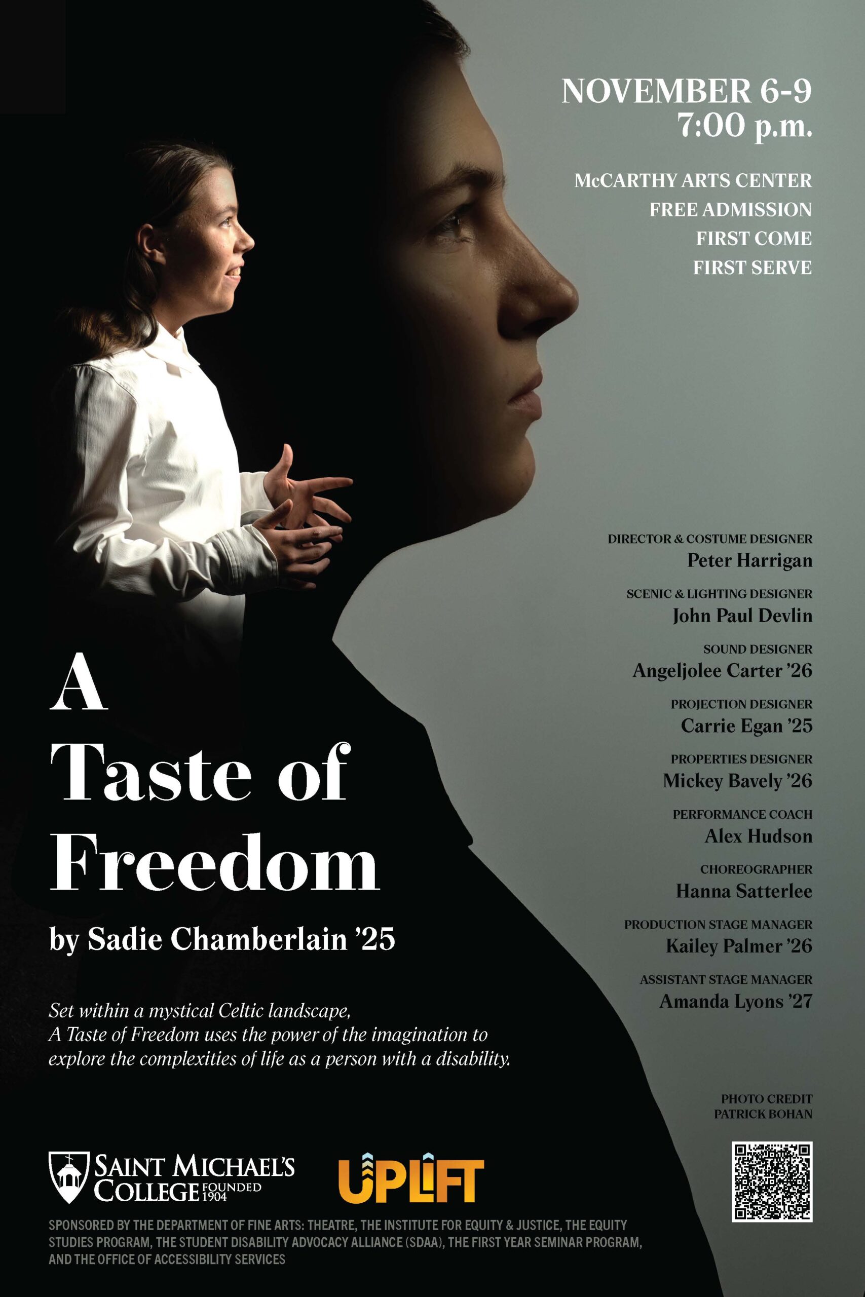 The Fall Mainstage Theatre production is “A Taste of Freedom” written by Sadie Chamberlain, SMC Class of 2025.