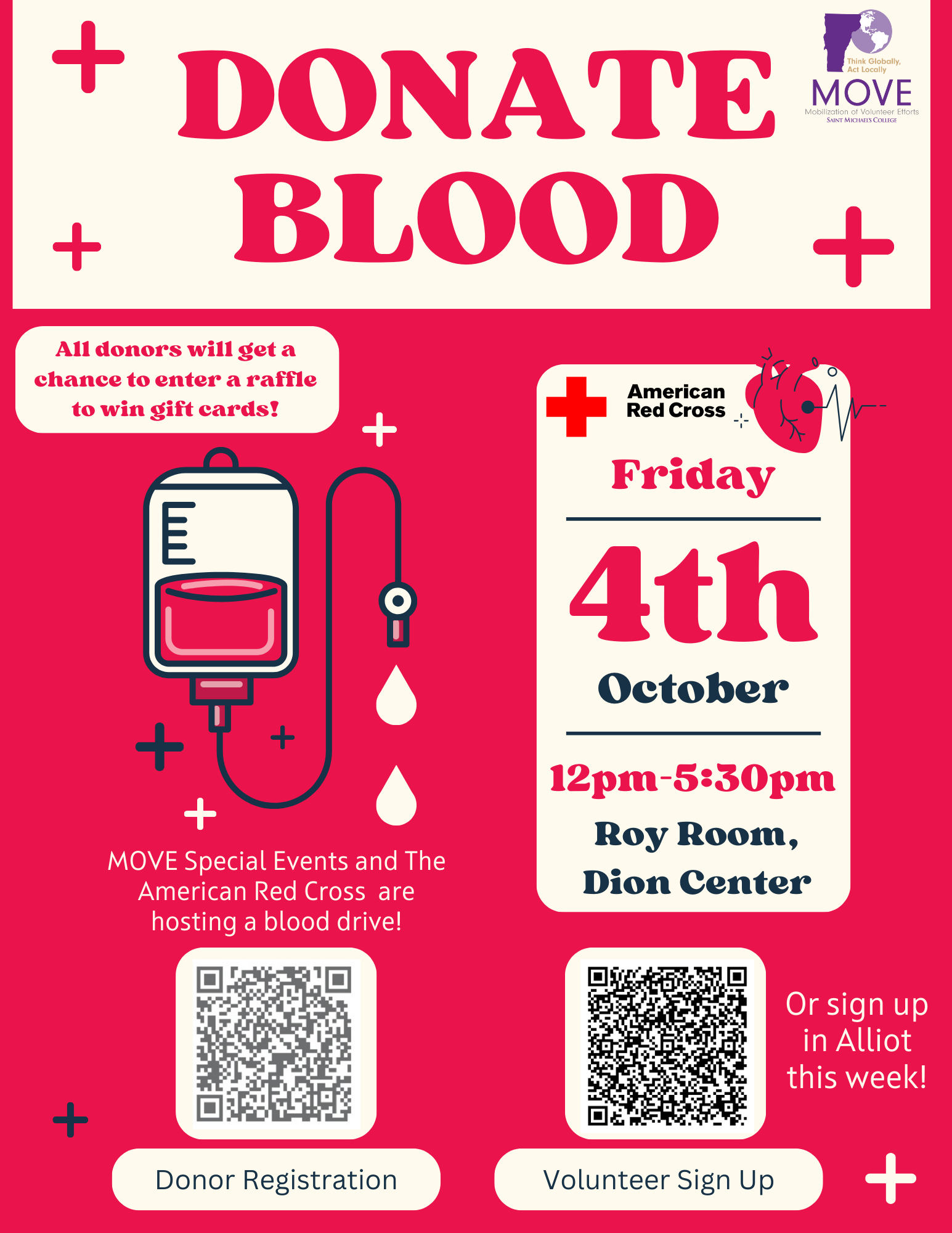 Donors and volunteers are needed for Fiz’s Blood Drive Friday Oct 4th, 12pm – 5:30PM, in the Roy Event Room in Dion. Due to hurricane Helene that has caused significant damage in the southern U.S., the American Red Cross is at an even more critical need for blood donations as blood drive cancellations resulted in a loss of collecting 1,500 units of blood. Each blood donation can help save multiple lives, and an estimated 29,000 units of blood are used to treat patients in the U.S. every day.