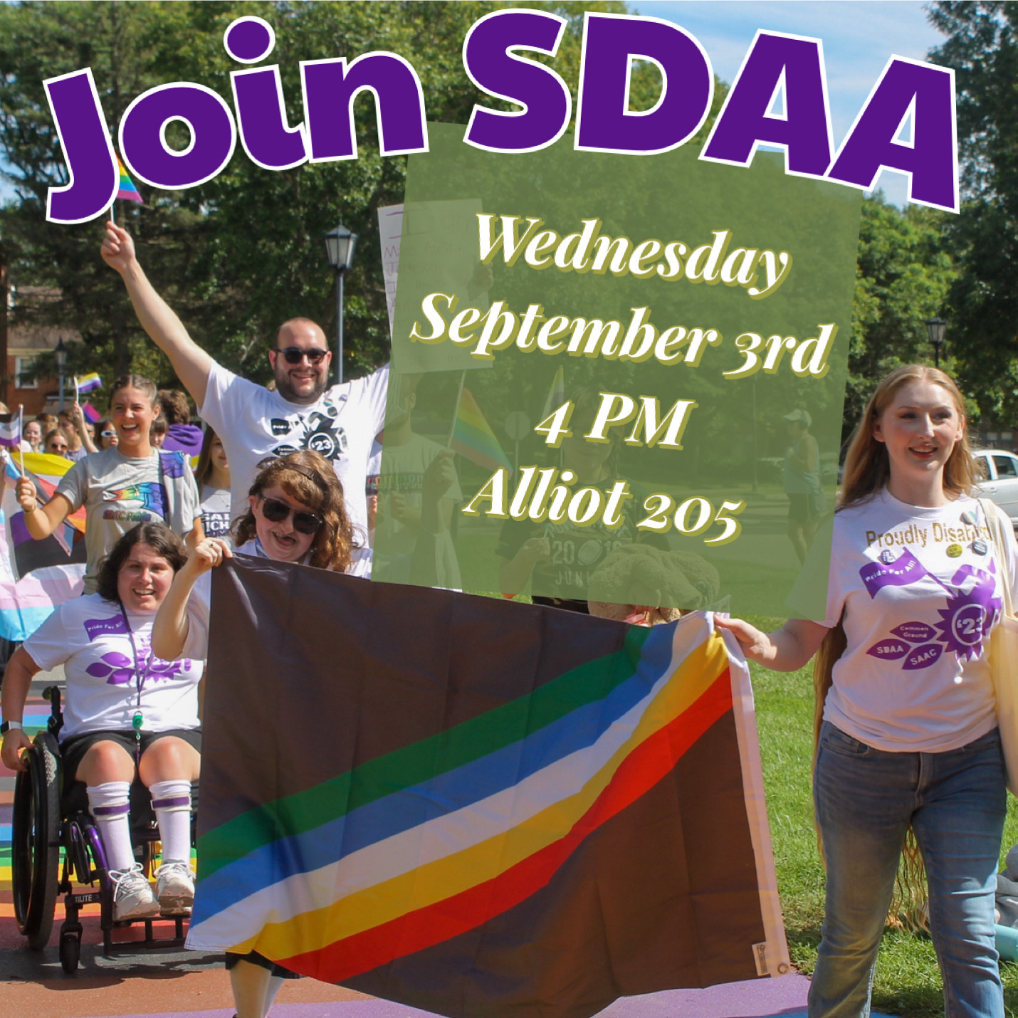 Join the Student Disability Advocacy Alliance (SDAA) for our first meeting of the semester! SDAA is a student-led group committed to promoting disability justice, accessibility, and inclusion on campus. Whether you identify as disabled, chronically ill, neurodivergent, an ally, or are just curious to learn more, everyone is welcome. Come meet other students, learn about our goals for the year, and help shape our advocacy and community-building efforts.