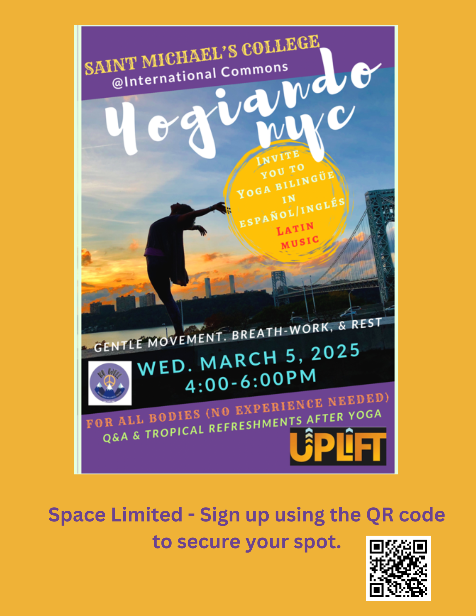 Join Yogiando NYC for Bilingiual Yoga in English and Spanish infused with Latin music. The yoga will incorporate gentle movement, breathwork and rest. There will also be a Q & A session and tropical refreshments to follow.