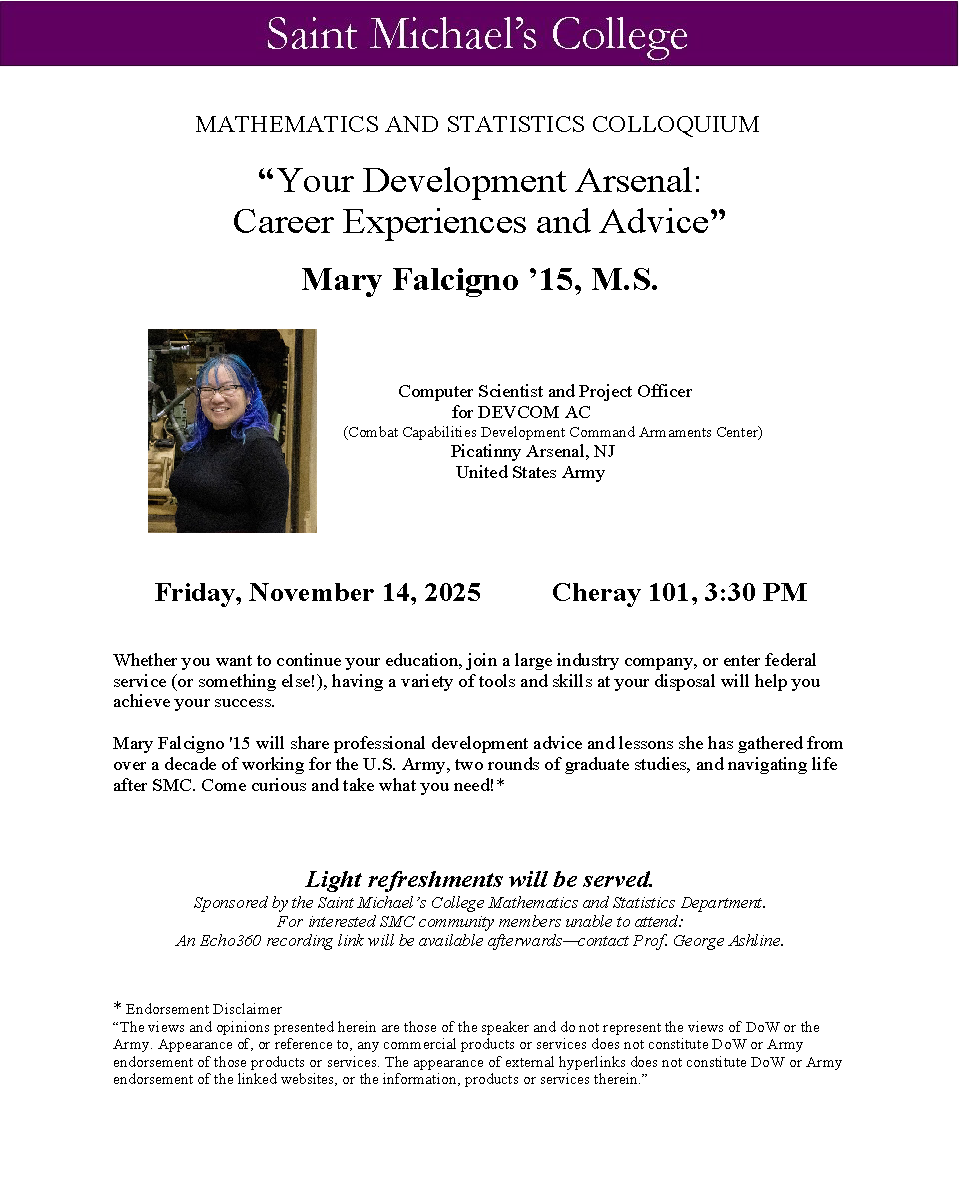 “Your Development Arsenal: Career Experiences and Advice” Mary Falcigno ’15, M.S. Whether you want to continue your education, join a large industry company, or enter federal service (or something else!), having a variety of tools and skills at your disposal will help you achieve your success. Mary Falcigno '15 will share professional development advice and […]