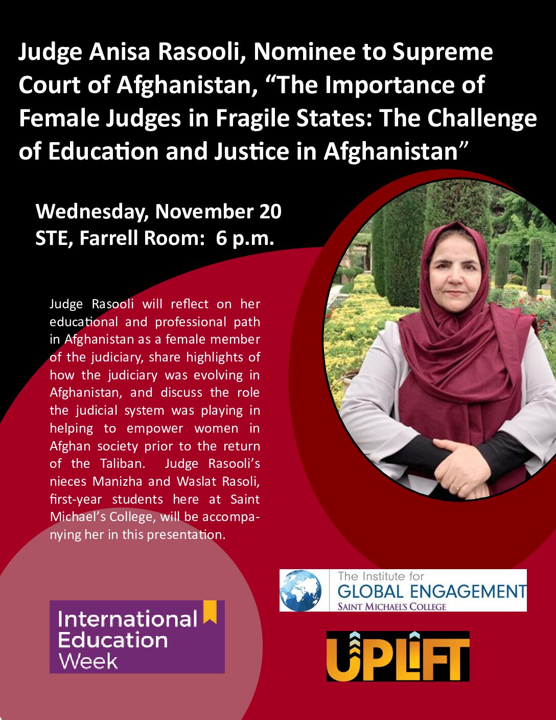 Judge Anisa Rasooli, Nominee to Supreme Court of Afghanistan, “The Importance of Female Judges in Fragile States: The Challenge of Education and Justice in Afghanistan”