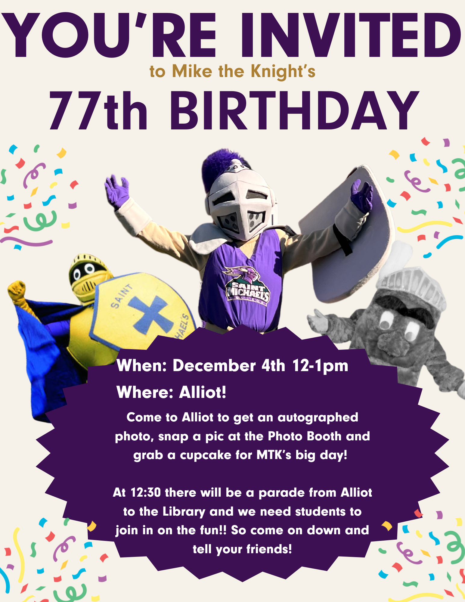 Celebrate Mike the Knight’s 77th Birthday! Dec 4 Celebrate Mike the Knight’s 77th Birthday! 12:00 pm - 1:00 pm