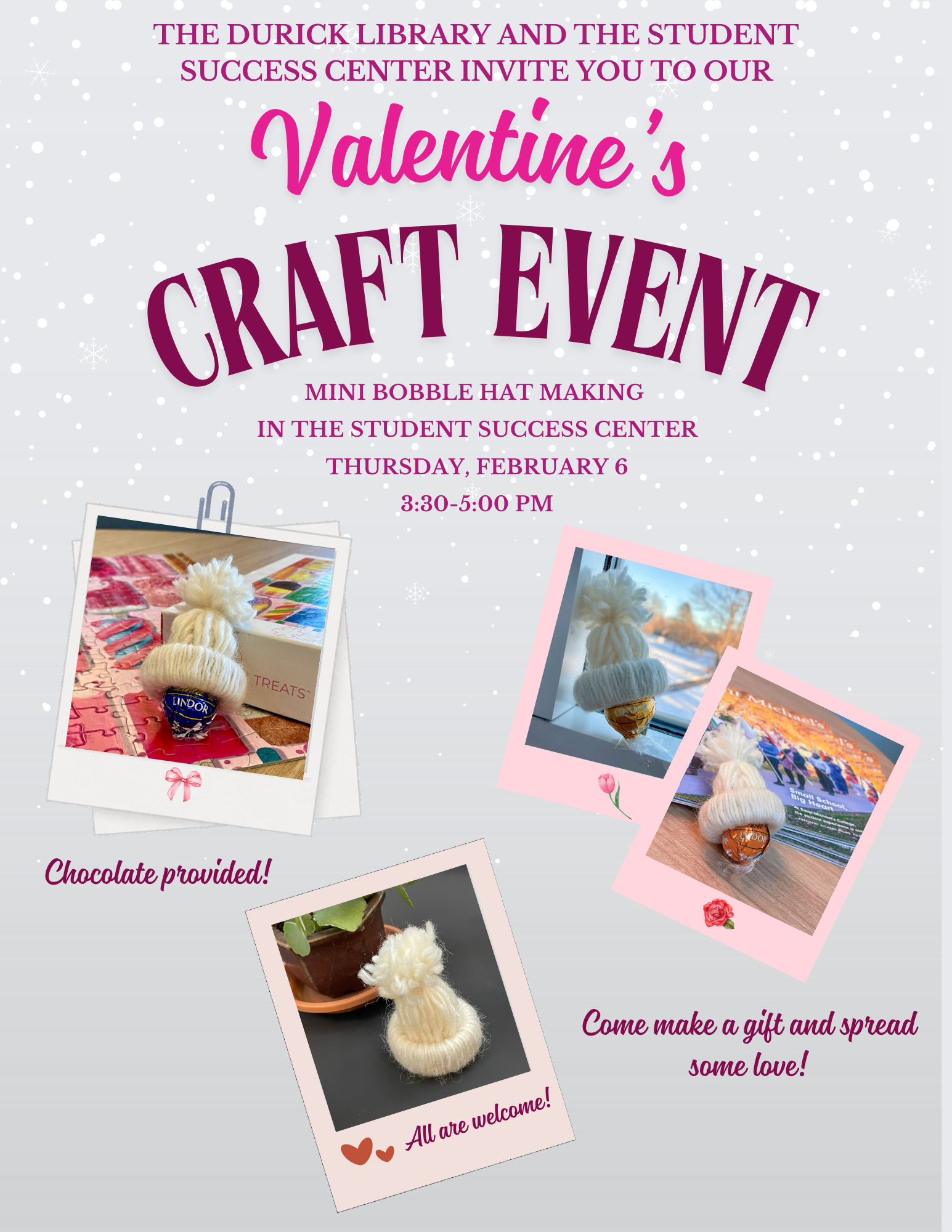 Brought to you by Durick Library and Student Activities. Categories include: Geography, Food & Drink, Animals, Science, and an audio round of Who Said it?: TV Character Edition. To register, contact Kristen Hindes at khindes@smcvt.edu by 1/29. Please include your team name, the number of people on the team (3-5), and your team captain and […]