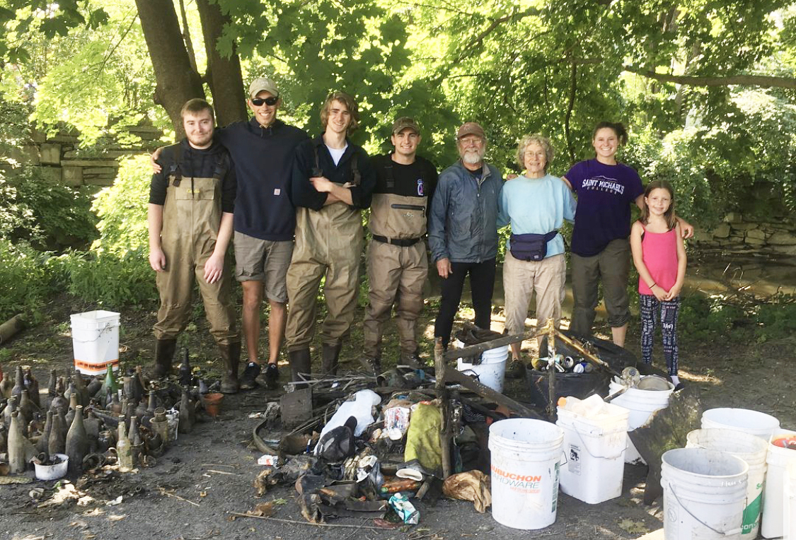 Members of the Fly Fishing Club last year took part in a Winooski River Cleanup event, joining members of the wider community. Sean McGurn is second from left. Previous club President Lauren Dunn ’20 is second from right.