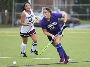 Kelsie Miller in action playing field hockey in college. (James Buck / St. Michael’s College)