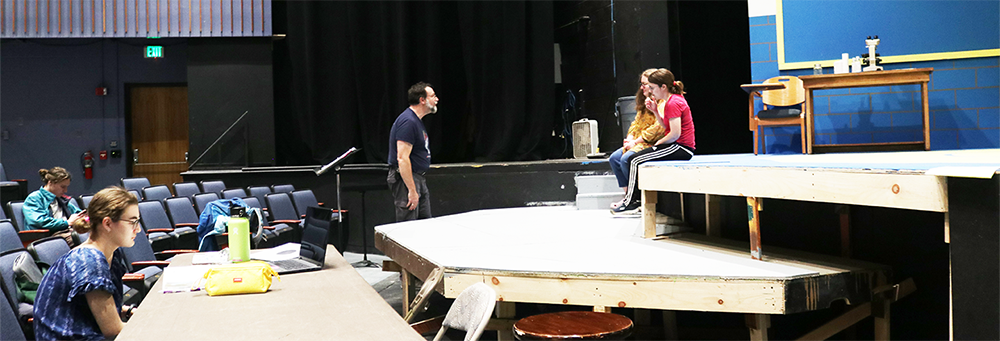 John Devlin, center, directs an earlier rehearsal of the fall play. (photo by Peyton Edwards ’23)