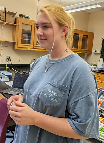 Aspiring pharmacologist Macdonald sees “a lot of parallels between where I want to end up and what Professor Dieni is doing now … so I think it’s going to be a huge thing for me in psychopharmacology, especially in neuroscience, just getting the ground work on a lot of lab experiences.” He adds, “Enzyme activity is interesting to me and I think will help me a lot in what I want to study.”