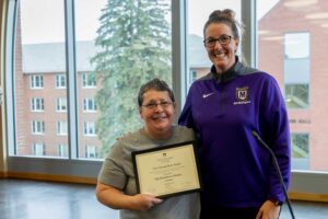 Ella Shortsleeves-Becker, Custodian, received an Unsung Hero Award, which was presented by Shannon Bollhardt, Head Coach for Women’s Basketball. This award is given to a staff member who works diligently, wisely, efficiently, and humbly— not for recognition or praise— but because of integrity and purpose. This recipient is a team-player, a quiet leader, not often (if ever) seen in the spotlight, who profoundly makes our community stronger.