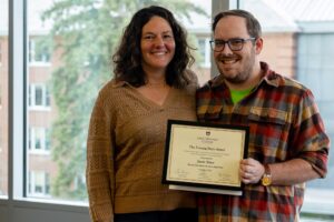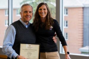 Todd Johnstone-Wright, who is the Director of the Undergraduate Professional Endorsement Program, received the Edmundite Founders’ Seed-Planter Award, which was presented by Eben Widlund, Director of Adventure Sports Center. This award is given to a staff member who thinks creatively, outside-the-box, and very often “plants seeds” that flourish. Named in honor of the small group of Edmundite founders who took a farmhouse and created a transformative, educational institution, this recipient thinks thoughtfully and critically, with equal parts intellect, heart, and faith, resulting in impact both big and small.