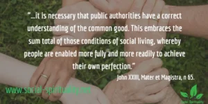 This vision is not limited to individual action. As Pope Benedict XVI explains, to desire the common good “is a requirement of justice and charity” (Caritas in Veritate [Charity in Truth],