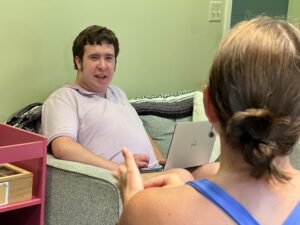 Aidan Hall ’27 interviews an educator for his summer research project on classroom management.