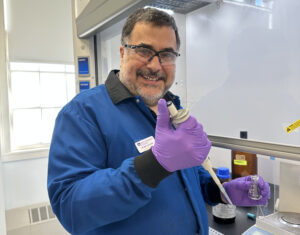 Chemistry Professor Mark Scialdone in the lab in fall 2025. (Courtesy Mark Scialdone)
