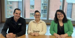From left, Nick Romano ’14 of Tytan Toys, Tayla Reo ’11 of Hasbro, and Cassandra Clayton of Vermont Teddy Bear, served on a panel at Saint Michael’s College in September 2025. (Photo by Stephanie Snell)