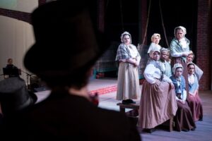 He added, “Most of the costumes that the mill girls wore in 2017 were actually kind of repurposed from a production of The Crucible in 2015. Some of these things are on their fourth show, so we’re trying to spruce them up and make them work.”