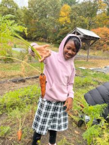 The field trip with HMS occurred in coordination with Professor Katy Farber’s Teaching Math class and the sixth grade classes at Hunt. The students visited both the Farm and the Natural Area. While in these spaces, the preservice teachers taught math lessons related to their physical environment. They created equations for the students to calculate the number of garlic heads to plant based on the size of the garden beds – a skill they had previously learned while visiting the Farm. When the groups visited the Natural Area, the preservice teachers used the curricular kit resources and got creative with their math lessons! Some went birding, using the Ebird app to make calculations about the presence of different species, while others calculated the grazing results of sheep in the solar field. However, all of the groups made phragmites insect hotels to bring home! Each preservice teacher group created their own equations to teach different skills, such as how many phragmites would fill a can and how many were necessary to fill 100 cans!